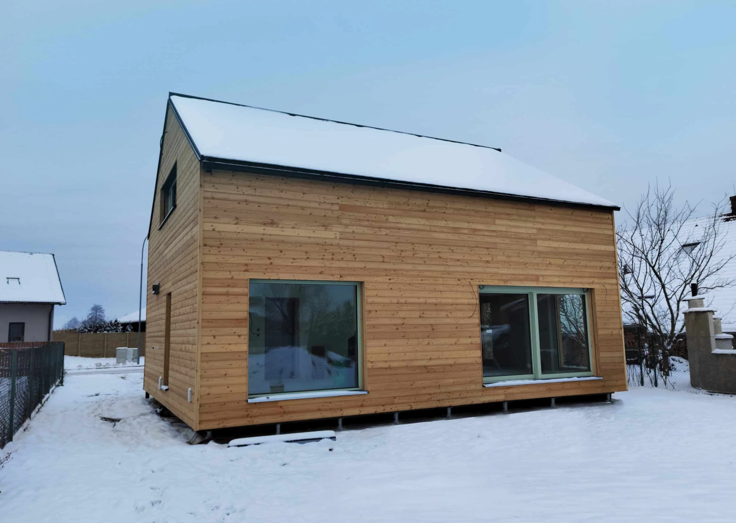 Dřevohliníková okna a dveře kombinují přírodní krásu dřeva v interiéru s odolným hliníkovým pláštěm na vnější straně. Tato konstrukce zajišťuje dlouhou životnost a výborné tepelně izolační vlastnosti, což je ideální pro pasivní a nízkoenergetické domy. Díky variabilitě hliníkových profilů je možné přizpůsobit okna různým architektonickým stylům, včetně obloukových tvarů.